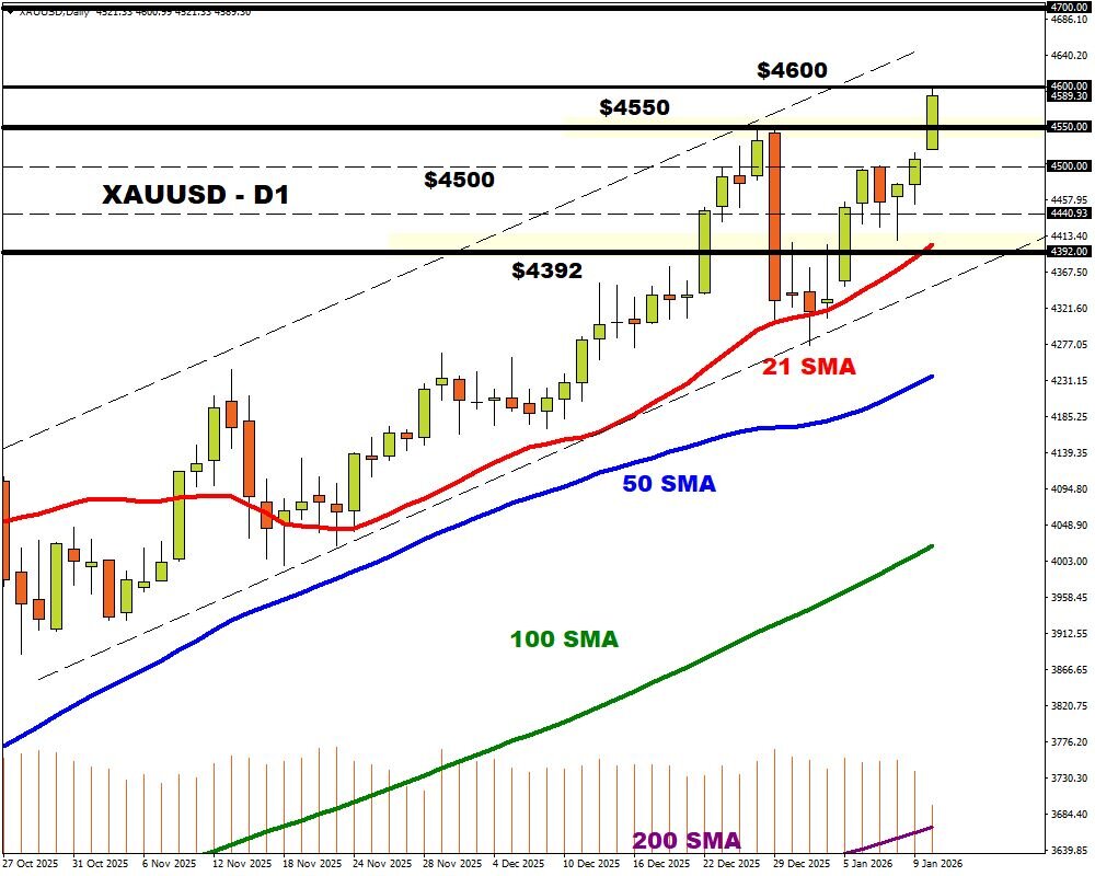 Speaking of gold, it has kicked off the new week, hitting fresh-all time highs – pushing 2026 gains to nearly 6%.